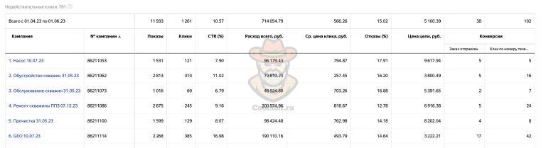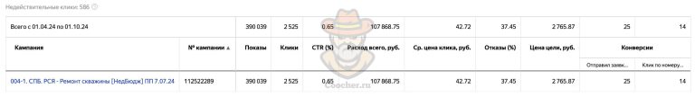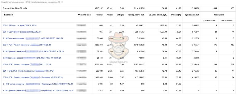 Рекламу в Яндекс Директе на проект по ремонту и чистке водяных скважин мы запустили в марте 2023 года и продолжаем работу до сих пор.