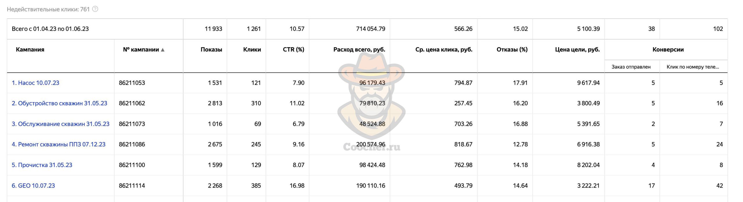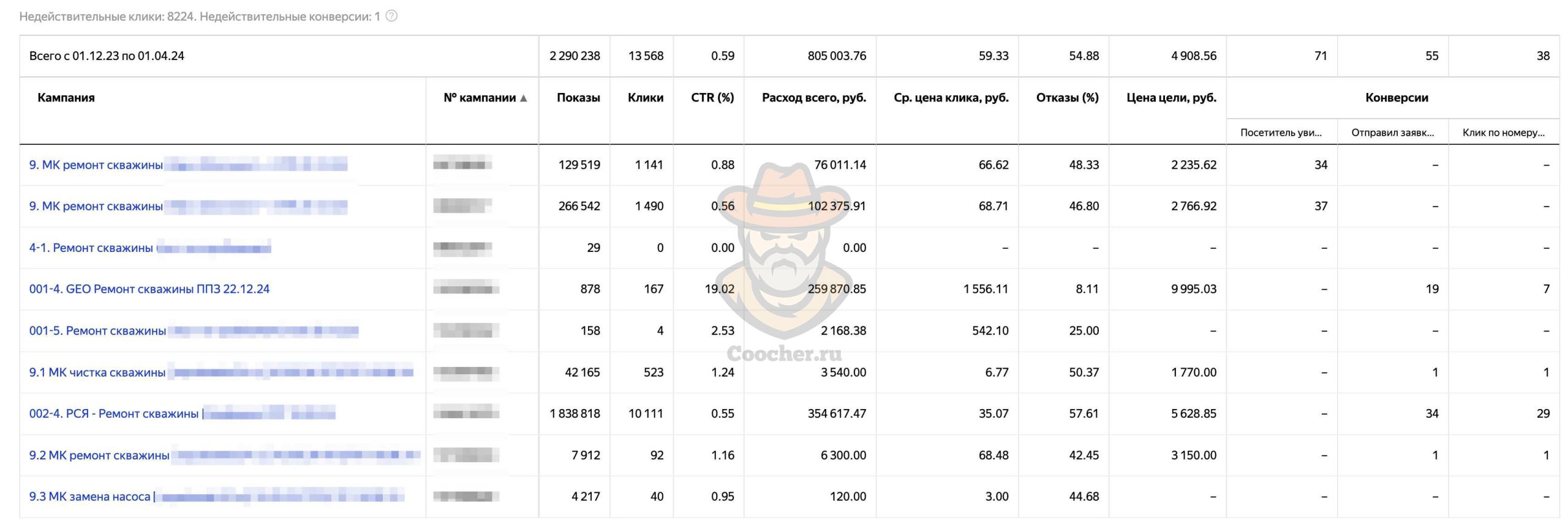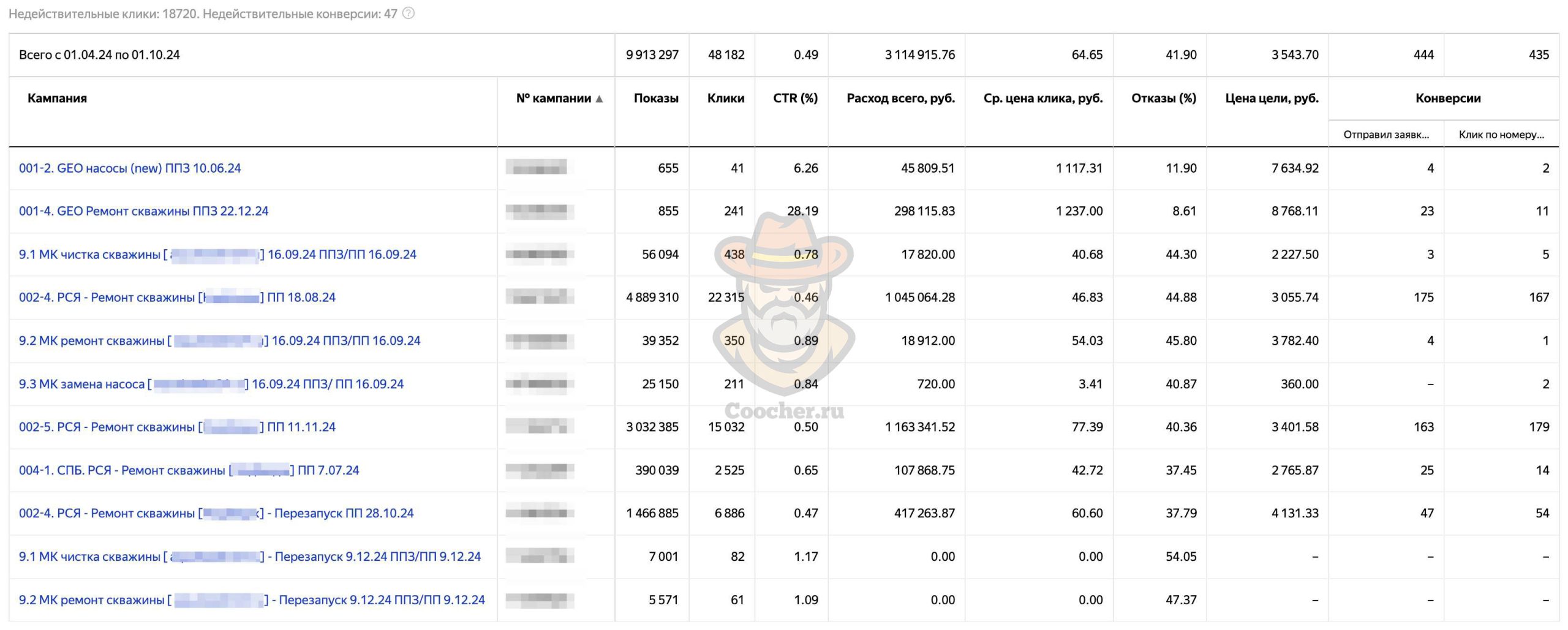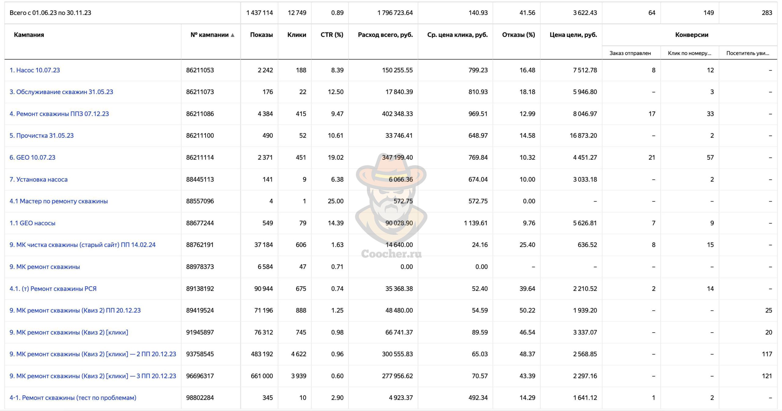 Рекламу в Яндекс Директе на проект по ремонту и чистке водяных скважин мы запустили в марте 2023 года и продолжаем работу до сих пор.